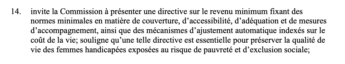sur le revenu minimum des femmes handicapées pour réduire leur risque de pauvreté.