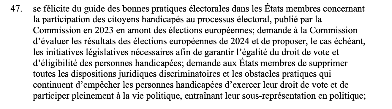Il s’est ABSTENU sur des mesures visant à garantir le droit de vote et d’éligibilité des personnes handicapées.