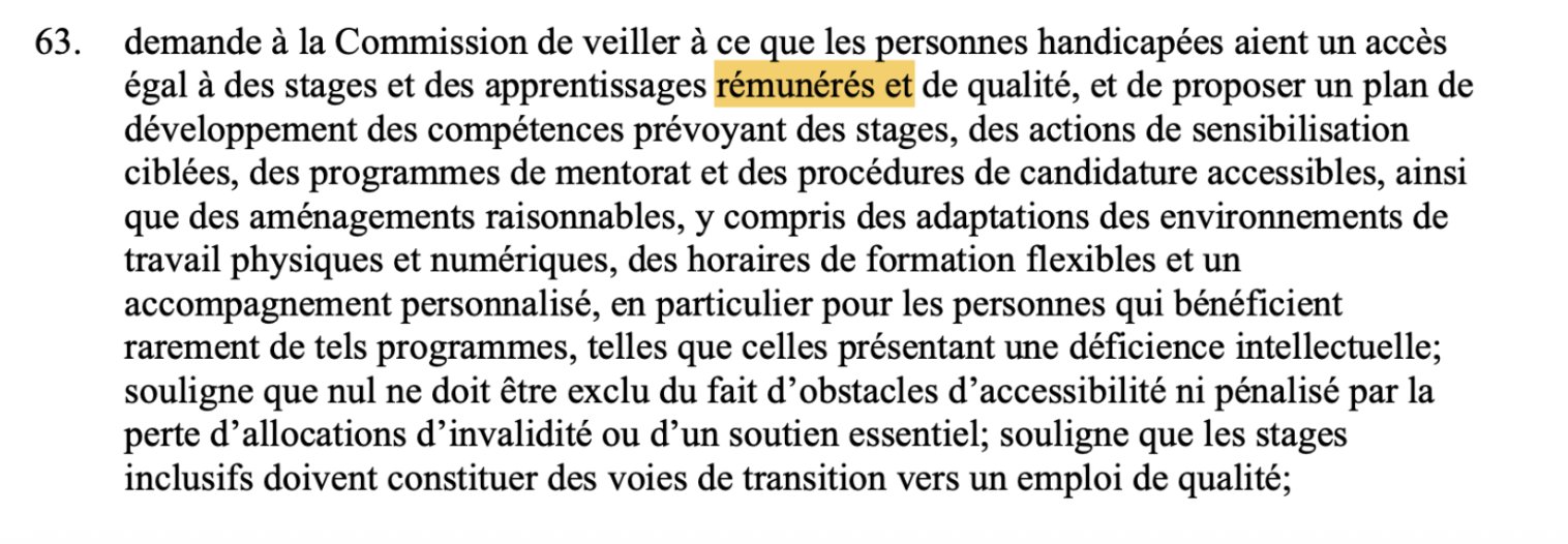 Il s’ABSTIENT sur la demande de garantir des stages accessibles & adaptés notamment pour les personnes ayant une déficience intellectuelle.