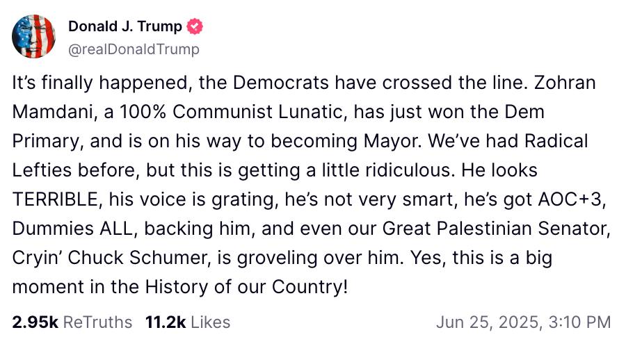 Mais cette rhétorique, usée jusqu’à l’os, bute sur la réalité électorale. Le principal adversaire de Zohran Mamdani, Andrew Cuomo, a dû démissionner il y a quatre ans pour ses harcèlements s*xuels. Eric Adams, le maire sortant est poursuivi pour corruption. Il s’est soudainement retiré de la course en apportant son soutien à Andrew Cuomo. Il y a de bonnes raisons de penser qu’il y a été incité par Donald Trump en échange de l’abandon des charges qui pèsent contre lui.